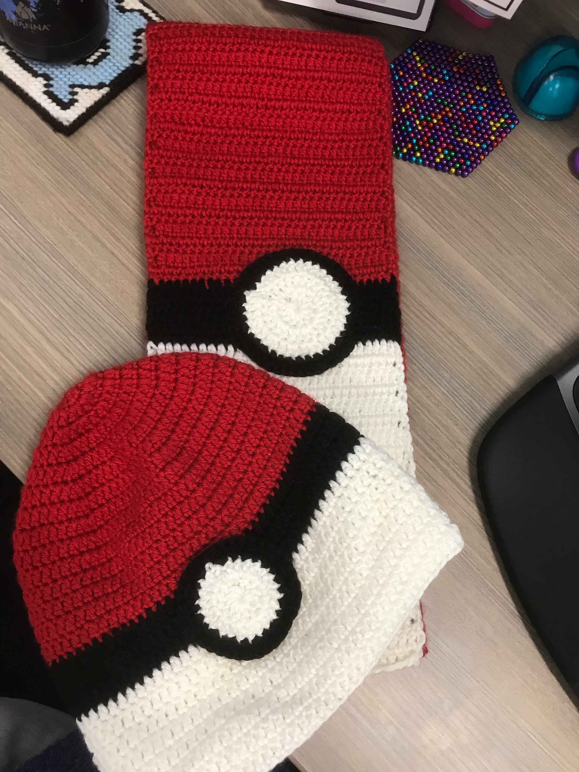 Enjoy this Pokeball Scarf & Hat for those cold days size is a one size fits most